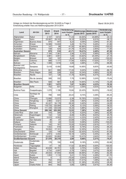 Anlage zur Antwort der Bundesregierung auf KA 18-4429 zu Frage 4 Stand: 09.04.2015 Erteilte Mehrjahresvisa 1) Mehrjahres- Mehrjahres- Land visa Gesamt visa Gesamt C1 2014 C1 2013 C2 2014 C2 2013 C3 2014 C3 2013 C4 2014 C4 2013 C5 2014 C5 2013 2014 2013 Afghanistan 49 41 46 39 1 2 1 0 1 0 0 0 Ägypten 9.278 6.875 4.934 3.814 2.021 1.447 1.330 1.058 251 133 742 423 Albanien 16 26 13 22 3 2 0 0 0 0 0 2 Drucksache 18/4765 Algerien 375 529 332 452 43 76 0 1 0 0 0 0 Angola 98 205 89 177 8 19 0 2 0 2 1 5 Argentinien 1 0 1 0 0 0 0 0 0 0 0 0 Armenien 1.798 1.511 1.281 1.216 316 227 154 57 25 7 22 4 Aserbaidschan 3.622 3.243 2.874 2.865 569 333 139 44 6 0 34 1 Äthiopien 369 453 244 341 94 96 28 13 3 3 0 0 Australien 0 1 0 1 0 0 0 0 0 0 0 0 Bahrain 5.502 3.842 2.090 1.894 2.114 994 1.007 775 227 126 64 53 Bangladesh 512 413 364 273 118 103 24 31 6 6 0 0 Belgien 2 1 2 1 0 0 0 0 0 0 0 0 Benin 50 40 42 38 3 2 1 0 0 0 4 0 Bolivien 163 81 52 41 66 14 37 22 3 1 5 3 – 40 – Bosnien u. 32 20 29 20 2 0 1 0 0 0 0 0 Herzegowina Botsuana 125 172 85 119 31 34 8 15 0 0 1 4 Brasilien 27 21 13 10 7 9 6 1 0 0 1 1 Bulgarien 220 128 184 113 26 11 5 2 0 1 5 1 Burkina Faso 195 111 139 98 12 11 14 0 30 2 0 0 Chile 16 18 10 10 4 6 2 2 0 0 0 0 China 31.060 15.257 26.852 13.983 2.913 914 1.130 323 81 12 84 25 Costa Rica 15 14 5 11 7 2 2 0 0 1 1 0 Côte d'Ivoire 125 116 92 105 28 11 4 0 1 0 0 0 Dänemark 0 0 0 0 0 0 0 0 0 0 0 0 Dom. Rep. 308 222 176 104 62 51 32 38 13 3 25 26 Ecuador 635 987 187 194 207 365 130 244 40 72 71 112 El Salvador 0 0 0 0 0 0 0 0 0 0 0 0 Estland 0 0 0 0 0 0 0 0 0 0 0 0 Finnland 0 0 0 0 0 0 0 0 0 0 0 0 Frankreich 1 0 1 0 0 0 0 0 0 0 0 0 Georgien 3.143 2.919 2.307 2.061 646 660 180 172 5 8 5 18 Ghana 521 399 325 250 146 109 42 31 7 7 1 2 Deutscher Bundestag – 18. Wahlperiode 1) Mehrfachnennungen möglich