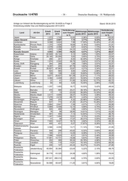 Drucksache 18/4765 – 38 – Deutscher Bundestag – 18. Wahlperiode Anlage zur Antwort der Bundesregierung auf KA 18-4429 zu Frage 2 Stand: 09.04.2015 Entwicklung erteilte Visa und Ablehnungsquoten 2013-2014 Veränderung Veränderung Erteilt Erteilt Ablehnungs- Ablehnungs- Land AV-Ort zum Vorjahr zum Vorjahr 2013 2014 quote 2013 quote 2014 in % in % Japan Tokyo 1.573 1.745 10,93 2,36% 0,00% -100,00 Japan Gesamt 2.517 2.697 7,15 3,71% 0,33% -91,11 Jordanien Amman 9.098 9.824 7,98 17,93% 10,49% -41,45 Kambodscha Phnom Penh 1.370 1.626 18,69 8,18% 3,93% -51,91 Kanada Toronto 2.078 2.096 0,87 8,54% 1,73% -79,79 Kanada Vancouver 1.975 1.299 -34,23 4,40% 0,53% -88,03 Kanada Gesamt 4.053 3.395 -16,23 6,57% 1,27% -80,67 Kasachstan Astana 22.949 24.124 5,12 3,69% 1,83% -50,57 Katar Doha 24.185 25.595 5,83 5,65% 3,75% -33,64 Kongo Kinshasa 266 241 -9,40 32,49% 7,22% -77,76 Korea Seoul 1.974 2.502 26,75 5,82% 0,51% -91,30 Korea, DVR Pjöngjang 264 269 1,89 7,69% 3,57% -53,57 Kroatien Zagreb 9.297 205 -97,79 3,62% 5,05% 39,46 Kuwait Kuwait 35.827 47.963 33,87 4,21% 3,34% -20,61 Laos Vientiane 924 985 6,60 4,94% 2,86% -42,14 Lettland Riga 109 108 -0,92 19,85% 13,95% -29,72 Libanon Beirut 9.877 25.837 161,59 22,81% 7,11% -68,83 Libyen Tripolis 3.394 4.409 29,91 16,55% 11,63% -29,72 Litauen Wilna 27 41 51,85 32,50% 12,77% -60,72 Luxemburg Luxemburg 60 60 0,00 10,45% 2,86% -72,65 Malaysia Kuala Lumpur 1.257 1.493 18,77 10,53% 5,42% -48,54 Mali Bamako 470 565 20,21 38,16% 26,07% -31,68 Malta Valletta 17 13 -23,53 39,29% 13,33% -66,06 Mexiko Mexiko-Stadt 3.517 4.856 38,07 10,05% 3,06% -69,54 Moldau Chisinau 7.276 2.418 -66,77 4,40% 3,61% -18,02 Montenegro Podgorica 348 370 6,32 25,96% 15,89% -38,77 Mosambik Maputo 637 773 21,35 20,47% 10,26% -49,91 Myanmar Rangun 2.864 2.647 -7,58 4,57% 1,37% -69,96 Namibia Windhuk 4.869 5.458 12,10 5,69% 0,75% -86,91 Neuseeland Wellington 505 495 -1,98 4,90% 2,71% -44,70 Nicaragua Managua 76 98 28,95 14,61% 1,01% -93,08 Niederlande Amsterdam 491 456 -7,13 12,94% 1,71% -86,76 Nigeria Abuja 1.347 1.494 10,91 9,72% 3,23% -66,72 Norwegen Oslo 41 48 17,07 29,31% 0,00% -100,00 Oman Maskat 7.940 9.427 18,73 2,82% 0,33% -88,38 Österreich Wien 455 431 -5,27 17,87% 8,26% -53,75 Palästinensische Ramallah 3.566 4.055 13,71 11,14% 7,58% -31,95 Gebiete Panama Panama 548 298 -45,62 6,32% 0,65% -89,80 Paraguay Asunción 185 211 14,05 6,09% 3,17% -48,00 Peru Lima 7.086 6.625 -6,51 3,91% 2,46% -36,89 Philippinen Manila 17.681 14.731 -16,68 5,63% 7,66% 36,03 Polen Warschau 202 395 95,54 20,78% 4,96% -76,11 Portugal Lissabon 135 115 -14,81 19,16% 6,50% -66,06 Ruanda Kigali 246 147 -40,24 18,27% 13,22% -27,66 Russische Jekaterinburg 45.954 35.364 -23,04 5,22% 2,15% -58,79 Föderation Russische Kaliningrad 34.778 43.325 24,58 4,60% 1,06% -76,93 Föderation Russische Moskau 297.021 268.314 -9,66 4,70% 2,60% -44,55 Föderation Russische Nowosibirsk 54.589 48.447 -11,25 3,91% 4,64% 18,85 Föderation