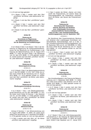 Bundesgesetzblatt Jahrgang 2017 Teil I Nr. 16, ausgegeben zu Bonn am 4. April 2017 (BGBl. I S. 95) geändert worden ist, werden nach dem Wort „schriftlich“ die Wörter „oder elektronisch“ einge- fügt. Artikel 66 Änderung der UAG-Beleihungsverordnung (2129-29-2) In § 3 Absatz 2 Satz 2 der UAG-Beleihungsverord- nung vom 18. Dezember 1995 (BGBl. I S. 2013), die zuletzt durch Artikel 100 der Verordnung vom 31. Au- gust 2015 (BGBl. I S. 1474) geändert worden ist, wer- den nach dem Wort „schriftlich“ die Wörter „oder elek- tronisch“ eingefügt. Artikel 67 Änderung des Projekt-Mechanismen-Gesetzes (2129-44) Das Projekt-Mechanismen-Gesetz vom 22. Septem- ber 2005 (BGBl. I S. 2826), das zuletzt durch Artikel 4 Absatz 29 des Gesetzes vom 18. Juli 2016 (BGBl. I S. 1666) geändert worden ist, wird wie folgt geändert: 1. § 3 Absatz 4 wird wie folgt geändert: a) In Satz 1 werden nach dem Wort „schriftlichen“ die Wörter „oder elektronischen“ eingefügt. b) In Satz 6 wird das Wort „schriftlich“ gestrichen. 639 Artikel 70 Änderung des Fernunterrichtsschutzgesetzes (2211-4) In § 19 Absatz 2 Satz 3 des Fernunterrichtsschutz- gesetzes in der Fassung der Bekanntmachung vom 4. Dezember 2000 (BGBl. I S. 1670), das zuletzt durch Artikel 3 des Gesetzes vom 20. September 2013 (BGBl. I S. 3642) geändert worden ist, werden nach dem Wort „schriftliche“ die Wörter „oder elektronische“ eingefügt. Artikel 71 Änderung des Bundesausbildungsförderungsgesetzes (2212-2) In § 48 Absatz 6 und § 50 Absatz 1 Satz 1 des Bun- desausbildungsförderungsgesetzes in der Fassung der Bekanntmachung vom 7. Dezember 2010 (BGBl. I S. 1952; 2012 I S. 197), das zuletzt durch Artikel 6 des Gesetzes vom 27. Juli 2015 (BGBl. I S. 1386) ge- ändert worden ist, werden jeweils nach dem Wort „schriftlich“ die Wörter „oder elektronisch“ eingefügt. Artikel 72 Änderung der Verordnung über den leistungsabhängigen Teilerlass von Ausbildungsförderungsdarlehen (2212-2-12) Artikel 68 In § 11 Absatz 1 der Verordnung über den leistungs- abhängigen Teilerlass von Ausbildungsförderungsdar- lehen vom 14. Dezember 1983 (BGBl. I S. 1439, 1575), die zuletzt durch Artikel 3 des Gesetzes vom 2. Dezem- ber 2004 (BGBl. I S. 3127) geändert worden ist, werden nach dem Wort „schriftliche“ die Wörter „oder elektro- nische“ eingefügt. Änderung der Seeversicherungsnachweisverordnung Artikel 73 2. In § 5 Absatz 4 Satz 1, § 6 Absatz 2 Satz 1 und § 8 Absatz 3 Satz 1 werden jeweils nach dem Wort „schriftlichen“ die Wörter „oder elektronischen“ ein- gefügt. (2129-58-1) Die Seeversicherungsnachweisverordnung vom 27. Juni 2013 (BGBl. I S. 1926, 1927), die durch Arti- kel 117 der Verordnung vom 31. August 2015 (BGBl. I S. 1474) geändert worden ist, wird wie folgt geändert: 1. In § 2 Absatz 1 Satz 1 und § 3 Absatz 1 Satz 1 wer- den jeweils nach dem Wort „schriftlich“ die Wörter „oder elektronisch“ eingefügt. 2. In § 4 Absatz 5 Satz 1 werden nach dem Wort „schriftlichen“ die Wörter „oder elektronischen“ ein- gefügt. Änderung des Aufstiegsfortbildungsförderungsgesetzes (2212-4) Das Aufstiegsfortbildungsförderungsgesetz in der Fassung der Bekanntmachung vom 15. Juni 2016 (BGBl. I S. 1450) wird wie folgt geändert: 1. In § 11 Absatz 1 Satz 2 Nummer 1 wird das Wort „Pflegegesetzes“ durch das Wort „Pflegezeitgeset- zes“ ersetzt. 2. In § 13b Absatz 3 Satz 2 und § 23 Absatz 1 Satz 1 werden jeweils nach dem Wort „schriftlich“ die Wör- ter „oder elektronisch“ eingefügt. Artikel 69 Artikel 74 Änderung des Unterhaltsvorschussgesetzes Änderung des Stipendienprogramm-Gesetzes (2163-1) (2212-6) In § 9 Absatz 2 Satz 1 des Unterhaltsvorschuss- gesetzes in der Fassung der Bekanntmachung vom 17. Juli 2007 (BGBl. I S. 1446), das zuletzt durch Arti- kel 3 Absatz 10 des Gesetzes vom 26. Juli 2016 (BGBl. I S. 1824) geändert worden ist, werden nach dem Wort „schriftlich“ die Wörter „oder elektronisch“ eingefügt. In § 6 Absatz 1 Satz 1 des Stipendienprogramm-Ge- setzes vom 21. Juli 2010 (BGBl. I S. 957), das zuletzt durch Artikel 2 des Gesetzes vom 23. Dezember 2014 (BGBl. I S. 2475) geändert worden ist, werden nach dem Wort „schriftlich“ die Wörter „oder elektronisch“ eingefügt. Ausgabe von Makrolog Das Bundesgesetzblatt im Internet: www.bundesgesetzblatt.de www.recht.makrolog.de | Ein Service des Bundesanzeiger Verlag: www.bundesanzeiger-verlag.de