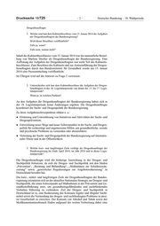 Deutscher Bundestag Drucksache 18/725 18. Wahlperiode 06.03.2014 Antwort der Bundesregierung auf die Kleine Anfrage der Abgeordneten Dr. Harald Terpe, Maria Klein-Schmeink, Elisabeth Scharfenberg, weiterer Abgeordneter und der Fraktion BÜNDNIS 90/DIE GRÜNEN – Drucksache 18/555 – Drogenpolitik der Bundesregierung und Aufgaben der Drogenbeauftragten Vo r b e m e r k u n g d e r F r a g e s t e l l e r Der Koalitionsvertrag zwischen CDU, CSU und SPD lässt offen, wie sich die neue Bundesregierung sucht- und drogenpolitisch positioniert und welche Vor- haben sie in dieser Legislaturperiode plant. Zudem stellt sich die Frage, wie die Bundesregierung die Drogenpolitik organisatorisch verankern wird. Das Amt der Drogenbeauftragten der Bundesregierung ist für die Koordination und Wei- terentwicklung der Sucht- und Drogenpolitik der Bundesrepublik Deutschland von großer Wichtigkeit. Daher ist die konkrete Ausgestaltung des Amtes hin- sichtlich der Kompetenzen der Beauftragten sowie die Ausstattung der Ge- schäftsstelle der Drogenbeauftragten mit Personal- und Sachmitteln von erheb- licher Bedeutung. Da in der Vergangenheit diese Ausstattung und Organisation des Amtes der Drogenbeauftragten und ihrer Geschäftsstelle stark variierte, stellen sich zahlreiche Fragen hinsichtlich der konkreten Ausgestaltung des Amtes, der Zusammensetzung des Drogen- und Suchtrates sowie des weiteren Vorgehens hinsichtlich der Nationalen Strategie für Drogen- und Suchtpolitik in der 18. Legislaturperiode. Vo r b e m e r k u n g d e r B u n d e s r e g i e r u n g Der Drogen- und Suchtpolitik wird innerhalb der Gesundheitspolitik eine beson- dere Bedeutung zugemessen. Dies wird mit der Einrichtung der Position der Beauftragten der Bundesregierung für Drogenfragen unterstrichen, die die Dro- gen- und Suchtpolitik der Bundesregierung koordiniert. Als Drogenbeauftragte wurde im Januar 2014 Marlene Mortler bestellt. Aufgaben und Stellung der Dro- genbeauftragten haben sich in der 18. Legislaturperiode im Vergleich zu den vorhergehenden Legislaturperioden nicht geändert. Die Antwort wurde namens der Bundesregierung mit Schreiben des Bundesministeriums für Gesundheit vom 4. März 2014 übermittelt. Die Drucksache enthält zusätzlich – in kleinerer Schrifttype – den Fragetext.
