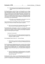 Deutscher Bundestag – 18. Wahlperiode –3– Drucksache 18/725 besondere Beachtung. Weiter finden der Konsum illegaler Substanzen, die Glücksspielsucht und der exzessive Medienkonsum besondere Aufmerksam- keit. 4. Wie will die Drogenbeauftragte die Zusammenarbeit mit den Ressorts und den nachgeordneten Behörden im Geschäftsbereich der Bundesregierung in dieser Legislaturperiode gestalten? Die Zusammenarbeit der Ressorts mit den Beauftragten der Bundesregierung, den Bundesbeauftragten sowie den Koordinatorinnen und Koordinatoren der Bundesregierung ist in § 21 der Gemeinsam Geschäftsordnung der Bundesmi- nisterien geregelt. Auf dieser Basis arbeitet die Drogenbeauftragte mit den Res- sorts und den nachgeordneten Behörden eng und vertrauensvoll zusammen. 5. Soll das Amt der Drogenbeauftragten der Bundesregierung ähnlich wie das der/des Beauftragten der Bundesregierung für die Belange der Patientinnen und Patienten (§ 140h des Fünften Buches Sozialgesetzbuch – SGB V) in dieser Legislaturperiode gesetzlich verankert werden? Wenn ja, im Betäubungsmittelgesetz, im SGB V, im geplanten Präventions- gesetz oder an einer anderen Stelle? Falls nein, warum nicht? Das Amt der Drogenbeauftragten der Bundesregierung hat sich in seiner jetzi- gen Form bewährt. Eine Änderung ist nicht vorgesehen. 6. Ist die Drogenbeauftragte der Bundesregierung Teil des Bundesministe- riums für Gesundheit? Die Drogenbeauftragte agiert unabhängig und ist nicht in die Hierarchie des Bundesministeriums für Gesundheit eingebunden. Sie wird bei der Aufgabener- füllung von den Bundesministerien, insbesondere vom Bundesministerium für Gesundheit, dessen Geschäftsbereich sie zugeordnet ist, unterstützt. 7. Über welche Kompetenzen verfügt die Drogenbeauftragte der Bundesregie- rung bzw. ihre Geschäftsstelle? 8. Über welche Kompetenzen verfügt die Drogenbeauftragte im Bundesminis- terium für Gesundheit? Auf die Antwort zu Frage 2 wird verwiesen. 9. Wem gegenüber ist die Drogenbeauftragte weisungsbefugt? Die Drogenbeauftragte wird bei der Wahrnehmung ihrer Aufgaben durch eine im Bundesministerium für Gesundheit angesiedelte Geschäftsstelle unterstützt. Eine Weisungsbefugnis besteht nicht.