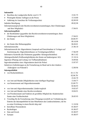 39 Hochschulfinanzierung (leistungsbasiert) Hochschulgremien, Amtszeit Hochschullehrer (Fachhochschule für Verwaltung und Rechtspflege Berlin) Hochschullehrergesetz Hochschulmedizin Hochschulpersonal-Übernahmegesetz (Auslegung von § 2 Abs. 3) Hochschulprofessoren (Inkompatibilität) Hochschulrahmengesetz Finanz- und Wirtschaftsverwaltung Kuratorium Übernahme von Vorschriften in das Berliner Hochschulgesetz § 38 Abs. 1 Satz 2, Abs. 2 Satz 1, Abs. 3 Satz 5 (Verhältnis der Sitze und der Stimmen in den zentralen Kollegialorganen und im Fachbereichsrat; Professorenmehrheit) § 41 HRG (verfasste Studierendenschaft) Regelstudienzeit Hochschulrecht Wahlpflicht der Studenten zu Universitätsgremien Gesetzentwurf zur Änderung des Berliner Hochschulgesetzes Zulässigkeit von Stimmrechtsbeschränkungen für Professoren in Hochschulgremien Satzungsautonomie der Hochschulen Masterstudiengänge Hochschulverträge 2010 bis 2013 Höchstzahlverfahren d'Hondt (Sitzverteilung) Homogenitätsklausel Humanmedizin (Regelung im Hochschulgesetz) Humboldthaften II HOWOGE-ÖÖP-Modell 09.11.09 19.02.97/ 07.01.03 01.11.74 05.03.70 19.05.03 03.12.92 12.09.97 08.10.73 08.10.73 01.09.78 08.12.97 19.11.02 23.01.15 07.09.71 08.03.91 08.12.97 11.04.06 11.04.06 09.11.09 15.11.73 02.06.93 08.10.73 15.06.09 31.05.19 I Immatrikulations-und Rückmeldegebühren Exmatrikulation Geschlossene Immobilienfonds Immunität Geltungsbereich der allg. Genehmigung gemäß Anlage 5 der GO Schutz bei polizeilichen Maßnahmen Aufhebung der - (Synopse von Regelungen sowie Entscheidungspraxis einiger Parlamente) 09.11.04 23.01.15 09.01.15 26.05.94 15.07.97 03.05.00