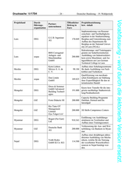 Deutscher Bundestag – 19. Wahlperiode – 23 – Drucksache 19/1754 Vorabfassung - wird durch die lektorierte Version ersetzt. Projektland Durch- Öffentlicher Projektbezeichnung Partner- führungs- Beitrag in bzw. -inhalt unternehmen organisation Euro #Einführung umweltfreundlicher Produktionsprozesse durch spezi- elle Schulungsmaßnahmen bei Herstellung und Druck von Eti- ketten im Rahmen der Einfüh- RAKO Etiketten China DEG 85.000 rung einer Schrumpf-Folien-Pro- GmbH & Co. KG duktion in Hangzhou und Aufbau eines neuen Produktionsstandor- tes in Guangzhou in Kooperation mit der Zhejiang University of Science and Technology (ZUST) Qualifizierung von sechs Zuliefe- rern duch gezielte Maßnahmen WOLF Lingerie China DEG 196.088 und Schaffung von Berufsbil- Ltd. dungsstrukturen in der chinesi- schen Unterwäscheindustrie. Errichtung einer Behinderten- Mobil Data (Tai- werkstatt mit angegliederter Aus- China DEG 1.173.001 cang) Co. Ltd. bildung zum Betreuer behinderter Menschen. SINO-GERMAN Eldery-Care Ingenium Institut School Etablierung einer Berufs- für Unterneh- China DEG 196.485 fachschule für Altenpflege an mensentwicklung dem Anhui Medical Collge in und Hefei nach deutschem Muster tubus GmbH DRECHSLER- technik GmbH bau msr GmbH Baumit Building Technologietransfer im Bereich Material (Shang- Energieeffizienz unter besonderer China GIZ hai) Co., Ltd. 1.500.000 Berücksichtigung der Fachkräfte- Bauverfugung sicherung Werner/Richter GmbH Shanghai Hengzhi Construction Co., Ltd. Praxisnahe Weiterbildung chine- International De- sischer Fachkräfte zur Förderung partment des innovativer und nachhaltiger Pro- China sequa Karlsruher Insti- 171.000 duktionsverfahren in chinesi- tuts für Technolo- schen Industriebetrieben (ProTa- gie (KIT) gGmbH lent)