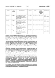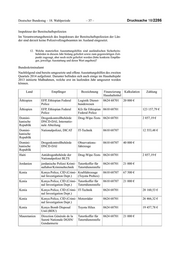 Deutscher Bundestag – 18. Wahlperiode – 31 – Drucksache 18/2286 Land Maß- Bezeichnung Beginn Ende Finan- Kalkulation nahme zierung Haushalts- titel Tansania Lehrgang Bekämpfung der Rausch- 29.09.2014 02.10.2014 0624 68701 MLG giftkriminalität (multi- (siehe KEN) national mit KEN, UGA, ETH, RWA) Uganda Lehrgang Bekämpfung der Rausch- 29.09.2014 02.10.2014 0624 68701 MLG giftkriminalität (multi- (siehe KEN) national mit KEN, TZA, ETH, RWA) Äthiopien Lehrgang Bekämpfung der Rausch- 29.09.2014 02.10.2014 0624 68701 MLG giftkriminalität (multi- (siehe KEN) national mit KEN, TZA, UGA, RWA) Ruanda Lehrgang Bekämpfung der Rausch- 29.09.2014 02.10.2014 0624 68701 MLG giftkriminalität (multi- (siehe KEN) national mit KEN, TZA, UGA, ETH) Das BKA beteiligt sich darüber hinaus unter der Leitung Spaniens an dem EU- finanzierten Projekt „EU Law Enforcement Support for the Fight against Drugs in Peru“. Im Konsortium befinden sich ferner die EU-Staaten Frankreich, Groß- britannien, Niederlande und die Tschechische Republik. Konkrete Trainings- inhalte müssen noch mit dem begünstigten Staat abgestimmt werden. Am 3. Juli 2014 hat das Projekt aufgrund der Zeichnung des Vertrages durch die spanische FIIAPP und die EU-Delegation in Lima offiziell begonnen. Die Vor- bereitung des Projektes vor Ort und damit auch die Phase der Bedarfserhebung (Inception Phase) wird mit Umzug der Langzeitexperten aus Spanien, Frank- reich, Großbritannien und Deutschland in der 30. bis 32. Kalenderwoche 2014 beginnen. Im Jahr 2013 wurde das Projekt „EuroEast Police“ zugunsten der Länder der östlichen Partnerschaft (ÖP) Weißrussland, Ukraine, Moldau, Georgien, Arme- nien und Aserbaidschan durch die Europäische Kommission mit einer Projekt- laufzeit von 48 Monaten und einem Budget von 5 Mio. Euro ausgeschrieben. Deutschland hat sich als Partner in einem Konsortium, gemeinsam mit den EU-Mitgliedstaaten Finnland, Frankreich, Litauen, Schweden sowie dem Inter- national Centre for Migration Policy Development (ICMPD), unter der Konsor- tialführerschaft von Polen, erfolgreich um die Durchführung beworben. Nach formalem Projektbeginn zum 1. Januar 2014, hat das Projekt – nach notwendiger Zeichnung eines Addendums – praktisch zum 17. März 2014 begonnen. Die Beteiligung Weißrusslands ist zwischenzeitlich suspendiert worden. Derzeit er- folgen im Rahmen einer dreimonatigen Bedarfserhebung (Inception Phase) die Einrichtung der Kontaktstellen in allen beteiligten Ländern sowie die Realisie- rung von Bedarfserhebungsreisen. Es wird darauf hingewiesen, dass zum jetzigen Zeitpunkt noch nicht alle Kalku- lationen fertiggestellt sowie Finanzierungen geklärt sind und dementsprechend keine konkreten Angaben hierzu gemacht werden können.