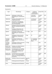 Drucksache 18/2286 – 32 – Deutscher Bundestag – 18. Wahlperiode Bundespolizei Land Bezeichnung Zeitraum Anzahl der Kosten/Titel Ort ausländischen Sicherheitskräfte Afghanistan Schulungen im Bereich der 3 Personen + 10 000 € DEU Bekämpfung der Urkundenkrimi- Dolmetscher 0610 nalität Afghanistan Schulung Arbeitsabläufe in einer 3–4 Personen + 13 000 € DEU Flughafendienststelle Dolmetscher 0610 Afghanistan Informations- und Erfahrungs- 10 000 € DEU austausch zum Aufgabenprofil 0610 einer Polizeiakademie Albanien Schulung im Bereich der Bekämp- 3 500 € ALB fung der Urkundenkriminalität FH 0610 Tirana Albanien Schulung im Bereich der Luft- 3 500 € ALB sicherheitskontrolle FH Tirana 0610 Algerien Schulungen im Bereich der 3 × 5 Tage 100 0610 ALG Bekämpfung der Urkundenkrimi- nalität Algerien Schulungen im Bereich der Be- 5 Tage 20 1 000 € ALG kämpfung der Urkundenkrimi- 0610 nalität Vereinigte Hospitation im Bereich der 2. HJ 4–5 Angehörige 0610 ARE Arabische Bekämpfung der Urkundenkrimi- der Abu Dhabi Emirate nalität Police Vereinigte Schulungen im Bereich der grenz- 7–9 Tage 0610 ARE Arabische polizeilichen Auswertung Emirate Bosnien und Schulung von mobilen Einheiten 7 466 € BIH Herzegowina im Bereich Grenzschutz 0610 Bosnien und Unterstützung bei der Erstellung 3 000 € BIH Herzegowina einer Einsatzkonzeption für den 0610 Einsatz mobiler Einheiten der Grenzpolizei Bosnien und Unterstützung bei der Erstellung 4 000 € BIH Herzegowina einer Aus- und Fortbildungskon- 0610 zeption zum Trainingsschießen der Grenzpolizei Bosnien und Schulung im Bereich Grenzpolizei September 3 000 € BIH Herzegowina 2014 0610 China Erfahrungsaustausch/Hospitation 1 Woche 10 000 € CHN 0610 China Erfahrungsaustausch/Hospitation 1 Woche 10 000 € CHN 0610