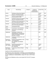 Drucksache 18/2286 – 34 – Deutscher Bundestag – 18. Wahlperiode Land Bezeichnung Zeitraum Anzahl der Kosten/Titel Ort ausländischen Sicherheitskräfte Serbien Schulung im Bereich der Bekämp- 2 000 € DEU fung der Urkundenkriminalität 0610 Serbien Seminar zur grenzpolizeilichen 2 500 € SRB Einreisekontrolle in SRB 0610 Tunesien Schulung im Bereich der Bekämp- 5 Tage 15 800 € TUN fung der Urkundenkriminalität 0610 Tunesien Schulung im Bereich grenzpolizei- 3 Tage 1 500 € liche Auswertung und Analyse 0610 Tunesien Schulung im Bereich grenzpolizei- 5 Tage 10 2 500 € liche Auswertung und Analyse 0610 Türkei Arbeitspartnerschaft 10 Tage 0610 Türkei Gemeinsames Auswerteprojekt 5 Tage 0610 Afghanistan Informations- und Erfahrungs- 0501 AFG austausch Afghanistan Schulungen im Bereich der 0501 AFG Bekämpfung der Urkundenkrimi- nalität und Schulung im Bereich Betreiben Leitstellen Afghanistan Schulungen im Bereich Aus- und 0501 AFG Fortbildung Palästinensi- Qualifizierungsmaßnahme im Be- 24 Tage 15 0501 sche Gebiete reich Objektschutz hier: Methodik- und Didaktik- Training Palästinensi- Qualifizierungsmaßnahme im 5 Tage 20 4 000 € sche Gebiete Bereich Objektschutz 0501 hier: Mentoring Palästinensi- Evaluierung im Bereich Objekt- 5 Tage 5 300 € sche Gebiete schutz 0501 Inspekteur der Bereitschaftspolizeien der Länder Die Planung der (grenz-)polizeilichen Ausbildungs- und Ausstattungshilfe be- findet sich aktuell in der Abstimmung. Es ist beabsichtigt die Zusammenarbeit mit den ausländischen Sicherheitskräften analog 2013 auch in 2014 fortzu- setzen. Die Kosten der Maßnahmen sollen aus dem Kapitel 0610 Titel 687 07 getragen werden.