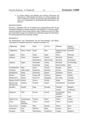 Deutscher Bundestag – 18. Wahlperiode – 35 – Drucksache 18/2286 11. In welchem Rahmen sind außerdem noch deutsche Polizistinnen und Polizisten bzw. Zollbeamtinnen und -beamte im Ausland eingesetzt, und welche Tätigkeiten verrichten sie dort (bitte nach Einsatzländern und -orten sowie Zugehörigkeit zu Bundesländern/BKA/Bundespolizei auf- gliedern)? Bundeskriminalamt Seit dem 1. September 2012 ist ein Beamter des Zeugenschutzes (ZD 36) des Bundeskriminalamtes in Ruanda eingesetzt. Das Referat IK 13 hat hier organi- satorisch unterstützt. Durch seinen Einsatz sollen Verfahren bei den OLG Stutt- gart und Frankfurt wegen des Verdachts des Verbrechens gegen die Menschlich- keit und Kriegsverbrechen unterstützt werden. Bundespolizei Die Bundespolizei setzt Polizeibeamte für den Hausordnungs- und Objekt- schutzdienst an folgenden deutschen Auslandsvertretungen ein: Afghanistan Kabul Israel Tel Aviv Pakistan Karachi Islamabad Afghanistan Mazar-e Sharif Italien Rom Palästinensische Ramallah Gebiete Ägypten Kairo Jemen Sanaa Polen Warschau Albanien Tirana Jordanien Amman Russland Moskau Kambodscha Phnom Penh Russland Kaliningrad Algerien Algier Kasachstan Almaty Russland St. Petersburg Kasachstan Astana Saudi-Arabien Riad Aserbaidschan Baku Kenia Nairobi Senegal Dakar Äthiopien Addis Abeba Kirgisistan Bischkek Serbien Belgrad Bangladesch Dhaka Kolumbien Bogotá Simbabwe Harare Belarus Minsk Kongo, DR Kinshasa Spanien Madrid Belgien (EU) Brüssel Korea, DV Pjöngjang Sri Lanka Colombo Belgien (NATO) Brüssel Kosovo Pristina Sudan Khartum Bosnien und Sarajewo Kroatien Zagreb Tadschikistan Duschanbe Herzegowina Brasilien Brasilia Kuba Havanna Thailand Bangkok Tschad N’Djamena Bulgarien Sofia Kuwait Kuwait Tschechische Prag Republik Tunesien Tunis Burkina Faso Ouagadougou Libanon Beirut Türkei Ankara China Peking Libyen Tripolis Türkei Istanbul Shenyang Côte d’Ivoire Abidjan Mali Bamako Türkei Izmir Frankreich Paris Marokko Rabat Ukraine Kiew Georgien Tiflis Mauretanien Nouakchott Ungarn Budapest