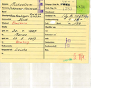 „DRBR Sterbe-Reg. Nr. +90, A 6829 | | Zuname | Vornamen Geburtsdatum “ % ; % Standesamt NL | Geburtsort Sarg Nr. 4 4 ? ” Feuer Nr. Nationalität ol@ Rs ch 2 Grabbrief Nr. Beruf ka ı pı ka" n ei Grablage +68 — Dienstgrad Mi Gest,/Get.am 9, 6.45% m Hbg, ‚ Todesursache beigeseiztas Leıche Anschrift der Angehörlgen AL. E a ge Bemerkungen