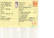 Vorname Dienstgrad R, i Smibi te 77 Nr. Nationalität R uss2a? 7AU um ___ LI97 Wohnort Straße Überführt am geb. am von in u | Exhumiert am gest. am 20. \ 74 $ 5” nach ’ä in + Denkzeichen | Todesursache Bundeszuschuß fr ja . beigesetzt os L&/c he Bem. en 4 | - = © ’ 5 gapray