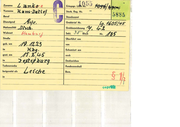 ‚ Zuname Kriegsgr. Liste Nr. dr Vornamen Sterbe-Reg. Nr. Geburtsdatum Standesamt Geburtsort Un 6. ' Feuer Nr. 2 LIS | Natlonalität unb. Grabbrief Nr. Beruf Ars er ter Grablage: Br = 79 33 "Tg Dienstgrad Bezirk hf ul. Gest./Gef. am F 22 i Z Ei Exhumiert am #2. M. SE - | in eue 19 7a mmeo von Todesursache nach beigesetzt als Y £ j | Grabzeichen: Kreuz Stele Platte? N - Anschrift der Angehörigen Öffentl. gepflegtes Grab ja/nein 2 Bemerkungen: