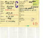 t Zuname MM a/s "Vornamen / 804 Sunenem 49 /uy HH J U 4 d U L 3 7 27 | Kriegsgr. Liste Nr. TI b g [Standesamt ul bif Geburtsdatum 2 nl, e R. Geburtsort Sy 6 an Nationalität Pol eh But Apberter Dienstgrad Gest./Gef. am 5 14 Y 5 | in H b 9 Todesursache beigesetzt als / © 1C h e Anschrift der Angehörigen SargNr./2 3 8 5 Feuer Nr. Grabbrief Nr. Grablage: Bp 73 Bezirk Reihe LAN Nr. 3 Exhumiert am von nach Grabzeichen: Kreuz Siele Plätte Öffentl. gepflegtes Grab ja/nein ® _ = Bemerkungen 7 ”