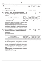 - 58 - 0903 Energie und Nachhaltigkeit Soll Soll 2017 Ist Titel Zweckbestimmung 2018 Reste 2017 2016 Funktion 1 000 € 1 000 € 1 000 € Titelgruppe 02 Tgr. 02 Energetische Gebäudesanierung (372 000) (455 000) (8 627) 661 21 Zuschüsse im Rahmen des Programms "Niedrigenergiehaus im Be- - - 3 700 -411 stand" (einschl. Heizungsmodernisierung und Energiesparhäuser) der 550 KfW-Bankengruppe - Abwicklung Erläuterungen: Gesamt- Nach 2017 Vorbe- ausgaben Verausgabt übertra- Veran- halten Mehrjährige Maßnahmen des bis Bewilligt gene Aus- schlagt für (davon neue Maßnahmen in Fettdruck) Bundes 2016 2017 gabereste 2018 2019 ff 1 000 € 1 000 € 1 000 € 1 000 € 1 000 € 1 000 € 1 2 3 4 5 6 7 1. Förderprogramme bis 2005..................................................... 391 519 390 969 - 550 - - Im Rahmen des CO2-Gebäudesanierungsprogramms wurden zusätzliche Sanie- rungsmaßnahmen an Altbauten der Baujahre bis 1978 mit dem Ziel einer weiteren Reduzierung des CO2-Ausstoßes im Gebäudebestand gefördert. Darüber hinaus wurde der Austausch von Gas-, Öl- und Kohleeinzelöfen, Kohle- heizungen und Nachtspeicherheizungen sowie der Einbau von Gas- und Ölbrenn- wertkesseln in Kombination mit Solaranlagen gefördert. Zudem erfolgte eine För- derung des Neubaus und des Umbaus von Altbauten zu Energiesparhäusern, die die Anforderungen der Energieeinsparverordnung nochmals deutlich unterschrit- ten. 661 22 Förderung von Maßnahmen zur energetischen Gebäudesanierung "CO2- 372 000 455 000 559 111 -411 Gebäudesanierungsprogramm" der KfW- Bankengruppe - Abwicklung 4 139 Haushaltsvermerk: Die Ausgaben sind übertragbar. Erläuterungen: Gesamt- Nach 2017 Vorbe- ausgaben Verausgabt übertra- Veran- halten Mehrjährige Maßnahmen des bis Bewilligt gene Aus- schlagt für (davon neue Maßnahmen in Fettdruck) Bundes 2016 2017 gabereste 2018 2019 ff 1 000 € 1 000 € 1 000 € 1 000 € 1 000 € 1 000 € 1 2 3 4 5 6 7 1. Förderprogramme bis 2011..................................................... 6 047 621 4 800 232 455 000 4 139 372 000 416 250 Das Förderprogramm war Bestandteil des Integrierten Energie- und Klimapro- gramms sowie des Energiekonzepts der Bundesregierung. Gefördert wurden Maßnahmen zur Energieeinsparung und Reduzierung des CO2- Ausstoßes insbesondere an Wohngebäuden sowie an Nichtwohngebäuden der kommunalen und sozialen Infrastruktur. Zudem erfolgte eine Förderung der Er- richtung von Energiesparhäusern bzw. Effizienzhäusern, welche die Anforderun- gen der Energieeinsparverordnung deutlich unterschreiten. Die Förderung erfolgte durch zinsgünstige Darlehen, die mit einem Teilschulderlass ergänzt werden konnten. Aus den Ausgaben werden Vergütungen für die treuhänderische Verwaltung so- wie Mandatartätigkeit geleistet. Weniger wegen planmäßiger Abwicklung.