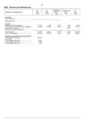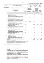 - 62 - 0904 Chancen der Globalisierung Veränderung Soll Soll Ausgabereste Ist gegenüber Überblick zum Kapitel 0904 2018 2017 2017 2016 2017 1 000 € 1 000 € 1 000 € 1 000 € 1 000 € Einnahmen Übrige Einnahmen.................................................. - - - - Gesamteinnahmen.................................................. - - - - Ausgaben Sächliche Verwaltungsausgaben............................ 8 400 7 069 +1 331 1 793 5 276 Zuweisungen und Zuschüsse (ohne Investitionen). 225 385 220 980 +4 405 4 027 217 930 Ausgaben für Investitionen...................................... - - - 2 500 - Besondere Finanzierungsausgaben....................... - - - - Gesamtausgaben.................................................... 233 785 228 049 +5 736 8 320 223 206 davon nicht flexibilisiert........................................... 233 785 228 049 +5 736 8 320 223 206 Verpflichtungsermächtigung im Haushalt 2018 Verpflichtungsermächtigung.................................... 86 979 davon fällig: im Haushaltsjahr 2019 bis zu.................................. 59 494 im Haushaltsjahr 2020 bis zu.................................. 17 683 im Haushaltsjahr 2021 bis zu.................................. 9 802