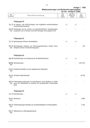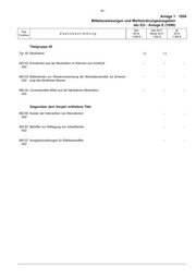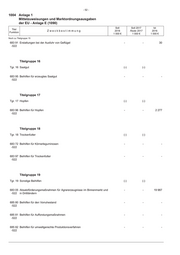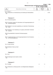- 51 - Anlage 1 1004 Mittelzuweisungen und Marktordnungsausgaben der EU - Anlage E (1090) Soll Soll 2017 Ist Titel Zweckbestimmung 2018 Reste 2017 2016 Funktion 1 000 € 1 000 € 1 000 € Noch zu Titelgruppe 11 685 74 Maßnahmen zur Umstrukturierung und Umstellung der Weinbauflächen - - 13 421 -522 Titelgruppe 12 Tgr. 12 Fischereierzeugnisse (-) (-) 683 81 Finanzieller Ausgleich für Interventionen der Erzeugerorganisationen für - - - -522 Fischereierzeugnisse 683 82 Beihilfen für die private Lagerhaltung von bestimmten Fischereierzeug- - - - -522 nissen 683 83 Beihilfen für die Verarbeitung und Lagerung intervenierter Fischereier- - - - -522 zeugnisse 683 84 Pauschalbeihilfen für bestimmte Fischereierzeugnisse - - - -522 685 77 Ausgleichszahlungen an die Erzeugerorganisationen für die Produktions- - - - -522 und Vermarktungsplanung Titelgruppe 13 Tgr. 13 Flachs und Hanf (-) (-) 683 86 Beihilfen für Flachs und Hanf - - - -522 Titelgruppe 14 Tgr. 14 Eier (-) (-) 683 90 Erstattungen bei der Ausfuhr von Eiern - - - -522 Titelgruppe 15 Tgr. 15 Geflügel (-) (-) 683 15 Maßnahmen zur Stützung des Eier- und Geflügelmarktes (Geflügelpest) - - - -522