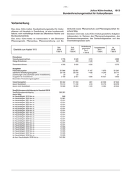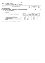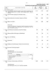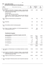 - 117 - Julius Kühn-Institut, 1013 Bundesforschungsinstitut für Kulturpflanzen Soll Soll 2017 Ist Titel Zweckbestimmung 2018 Reste 2017 2016 Funktion 1 000 € 1 000 € 1 000 € Noch zu flexibilisierte Ausgaben F 511 01 Geschäftsbedarf und Kommunikation sowie Geräte, Ausstattungs- und 2 141 2 118 2 064 -165 Ausrüstungsgegenstände, sonstige Gebrauchsgegenstände, Software, Wartung F 514 01 Verbrauchsmittel, Haltung von Fahrzeugen und dgl. 480 475 484 -165 F 517 01 Bewirtschaftung der Grundstücke, Gebäude und Räume 8 800 8 800 7 158 -165 F 518 01 Mieten und Pachten 1 761 1 650 1 262 -165 Erläuterungen: Ausgaben für Erstattungen an das deutsche Institut für medizinische Dokumenta- tion und Information für die Mitbenutzung des Rechenzentrums sind bei Kap. 1011 Tit. 981 07 zu buchen. F 519 01 Unterhaltung der Grundstücke und baulichen Anlagen 579 506 558 -165 F 523 01 Wissenschaftliche Sammlungen und Bibliotheken 138 138 91 -165 F 525 01 Aus- und Fortbildung 212 193 173 -165 F 527 01 Dienstreisen 370 350 425 -165 F 532 01 Aufträge und Dienstleistungen im Bereich Informationstechnik 78 45 54 -165 F 539 99 Vermischte Verwaltungsausgaben 183 350 644 -165 Haushaltsvermerk: Die Erläuterungen zu Nr. 2 sind verbindlich. Erläuterungen: Bezeichnung 1 000 € 1. Kosten der Verlegung von Dienststellen......................................... 30 2. Bauplanungskosten......................................................................... - 3. Sonstiges......................................................................................... 153 Zusammen............................................................................................ 183 F 544 01 Forschung, Untersuchungen und Ähnliches 2 906 2 790 1 311 -165 Haushaltsvermerk: Die Erläuterungen zu Nr. 4, 5, 6, 7 und 8 sind verbindlich.