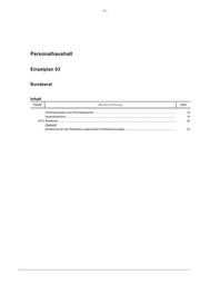 - 17 - Personalhaushalt Einzelplan 03 Bundesrat Inhalt Kapitel Bezeichnung Seite Vorbemerkungen zum Personalhaushalt.............................................................................................................. 18 Gesamtübersicht................................................................................................................................................... 19 0312 Bundesrat.............................................................................................................................................................. 20 Übersicht Darstellung der den Planstellen zugeordneten Amtsbezeichnungen.................................................................... 22