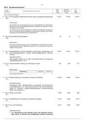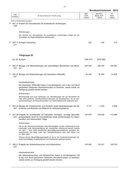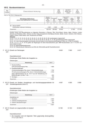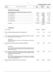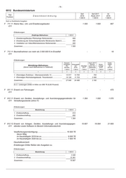 - 76 - 0512 Bundesministerium Soll Soll 2017 Ist Titel Zweckbestimmung 2018 Reste 2017 2016 Funktion 1 000 € 1 000 € 1 000 € Noch zu flexibilisierte Ausgaben F 711 11 Kleine Neu-, Um- und Erweiterungsbauten 1 555 1 600 667 -011 Erläuterungen: Einjährige Maßnahmen 1 000 € 1. Erweiterung/Neubau Pförtnerloge Reiherwerder............................ 655 2. Erweiterung der Schwerlastpollerreihe Werderscher Markt 5......... 400 3. Installation von Video/Wärmekameras Reihenwerder.................... 500 Zusammen............................................................................................ 1 555 F 712 11 Baumaßnahmen von mehr als 2 000 000 € im Einzelfall - - 18 -011 Erläuterungen: Gesamt- Nach 2017 Vorbe- ausgaben Verausgabt übertra- Veran- halten Mehrjährige Maßnahmen des bis Bewilligt gene Aus- schlagt für (davon neue Maßnahmen in Fettdruck) Bundes 2016 2017 gabereste 2018 2019 ff 1 000 € 1 000 € 1 000 € 1 000 € 1 000 € 1 000 € 1 2 3 4 5 6 7 1. Ehemaliges Ärztehaus - Oberwasserstraße 13....................... 13 517 12 763 - 754 - - 2 Ehemaliges Reichsbankgebäude, Tresorbereich.................... 14 129 11 723 - 2 406 - - Zusammen.................................................................................... 27 646 24 486 - 3 160 - - Zu 2.: Leistungen Dritter in Höhe von 969 T€ (6,80 Prozent) F 811 11 Erwerb von Fahrzeugen - - 475 -011 F 812 11 Erwerb von Geräten, Ausstattungs- und Ausrüstungsgegenständen für 1 264 1 000 1 070 -011 Verwaltungszwecke (ohne IT) Erläuterungen: Bezeichnung 1 000 € 1. Erstbeschaffung.............................................................................. 614 2. Ersatzbeschaffung........................................................................... 650 Zusammen............................................................................................ 1 264 F 812 12 Erwerb von Anlagen, Geräten, Ausstattungs- und Ausrüstungsgegen- 15 807 16 064 21 805 -011 ständen sowie Software im Bereich Informationstechnik Verpflichtungsermächtigung....................................................... 16 500 T€ davon fällig: im Haushaltsjahr 2019 bis zu................................................. 9 000 T€ im Haushaltsjahr 2020 bis zu................................................. 7 500 T€ Haushaltsvermerk: Erstattungen Dritter fließen den Ausgaben zu. Erläuterungen: Bezeichnung 1 000 € 1. Erstbeschaffung.............................................................................. 3 446 2. Ersatzbeschaffung........................................................................... 12 361 Zusammen............................................................................................ 15 807