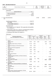 - 82 - 0512 Bundesministerium Soll Soll 2017 Ist Titel Zweckbestimmung 2018 Reste 2017 2016 Funktion 1 000 € 1 000 € 1 000 € Noch zu Titel 739 21 (Titelgruppe 02) Gesamt- Nach 2017 Vorbe- ausgaben Verausgabt übertra- Veran- halten Mehrjährige Maßnahmen des bis Bewilligt gene Aus- schlagt für (davon neue Maßnahmen in Fettdruck) Bundes 2016 2017 gabereste 2018 2019 ff 1 000 € 1 000 € 1 000 € 1 000 € 1 000 € 1 000 € 1 2 3 4 5 6 7 88. Brüssel NATO Innenausbau nationale Vertretung........................................ 2 641 2 453 188 - - - Zusammen.................................................................................... 522 875 268 892 39 000 - 37 905 177 078 Darüber hinaus sind Baumaßnahmen an folgenden Dienstorten in Planung: Tiflis, Port-of-Spain, Harare, Algier, Chisinau, London (Kanzlei und Residenz), Wien, Teheran und Den Haag (energetische Ertüchtigung Kanzlei), Djidda, Kuweit, Canberra, Erbil, Moskau, Zagreb, Pristina, Addis Abeba, Genf, Nouakchott und Rabat. Hinweise Zu Nr. 2, 6, 9, 10, 16, 18, 20, 25, 29, 33, 39, 40, 41, 43, 48, 49, 58, 63, 89: bundeseigene Liegenschaft Zu Nr. 1, 3, 4, 5, 7, 8, 11, 12, 19, 23, 45, 47, 52, 53, 57, 64, 66, 67, 68, 69, 73, 74, 88: gemietete/gepachtete Liegenschaft Zu Nr. 16: In den Gesamtausgaben des Bundes sind die Kosten für die Zwischenunterbringung in Höhe von 13.268 T€ enthalten. Zu Nr. 3, 5, 6, 7, 11, 41, 43: Es gelten die Regelungen für kleine Baumaßnahmen gem. BMF-Rundschreiben vom 17.12.2012, Gz: IIA3-H1005/12/10007. Zu Nr. 20: Gegenseitigkeitsabkommen Zu Nr. 39: Finanzierung der Maßnahme aus Erlös der Altimmobilie gemäß Haushaltsvermerk. F 811 21 Erwerb von Fahrzeugen 6 803 7 000 6 471 -021 Haushaltsvermerk: Erstattungen Dritter fließen den Ausgaben zu. Erläuterungen: Bezeichnung 1 000 € 1. Neubeschaffung nicht personenbezogene Pkw......................................................... 1 650 2. Ersatzbeschaffungen 33 personenbezogene Pkw, davon 3 Sicherheitsfahrzeuge........... 1 750 79 nicht personenbezogene Pkw, davon 4 Sicherheitsfahrzeuge... 3 753 abzgl. Mehreinnahmen bei Tit. 132 21 aus der Veräußerung von Dienst-Kfz gem. § 6 Abs. 7 HG....................................................... -500 3. Sonstiges......................................................................................... 150 Zusammen............................................................................................ 6 803 F 812 21 Erwerb von Geräten, Ausstattungs- und Ausrüstungsgegenständen für 4 957 4 500 5 659 -021 Verwaltungszwecke (ohne IT) Haushaltsvermerk: Erstattungen Dritter fließen den Ausgaben zu. Erläuterungen: Bezeichnung 1 000 € Ausstattung von 1. Kanzleien......................................................................................... 2 950 2. amtlichen Empfangsräumen............................................................ 1 307 3. anderen Dienstwohnungen............................................................. 700 Zusammen............................................................................................ 4 957 F 821 21 Erwerb von Liegenschaften im Ausland 13 795 14 193 35 802 -021 Haushaltsvermerk: 1. Die Ausgaben sind mit folgenden Titeln gegenseitig deckungsfähig: 711 21 und 739 21.
