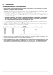 - 104 - 05 Vorbemerkungen Vorbemerkungen zum Personalhaushalt 1. Ersatz(plan)stellen werden zahlenmäßig in einer eigenen Spalte der Übersichten der ku- und kw-Vermerke in der Gesamt- übersicht und in den einzelnen Kapiteln nachgewiesen. Die sonstigen Ersatz(plan)stellen sind in der Übersicht mit der Kurzformulierung "Ersatzplanstelle" bzw."Ersatzstelle" ausge- wiesen, die Kurzformulierung entspricht dabei dem folgenden Wortlaut eines kw-Vermerks: - bei Titeln der Gruppe 422: kw - nach Rückkehr der abgeordneten Beschäftigten - mit Übernahme der Ersatzkräfte in eine freie oder die nächste frei werdende Planstelle ihrer Besoldungsgruppe oder mit Versetzung der Beschäftigten oder ihrem Ausscheiden aus dem Dienst - bei Titeln der Gruppe 428: kw - nach Rückkehr der abgeordneten Beschäftigten - mit Übernahme der Ersatzkräfte in eine freie oder die nächste frei werdende Stelle ihrer Entgeltgruppe oder Planstelle der entsprechenden Besoldungsgruppe oder mit Versetzung der Beschäftigten oder ihrem Ausscheiden aus dem Dienst 2. AT B ist die Kurzbezeichnung für Arbeitsverhältnisse mit Verträgen nach Anlage 1a oder 1b des BMI-Rundschreibens vom 18. November 2005 - D II 2 - 220 234 - in der jeweils geltenden Fassung. 3. Anzahl der im Haushaltsjahr 2016 eingesetzten Arbeitskräfte mit befristeten Verträgen (umgerechnet auf vollbeschäftigte Ar- beitskräfte im Haushaltsjahr) und Auszubildende (Jahresdurchschnitt): Kapitel Titel Arbeitskräfte Auszubildende mit befristeten Verträgen 0504 427 29 73,0 - 0512 427 19 58,0 13,0 0512 427 29 207,0 - 0513 427 09 13,0 - 0513 427 19 46,0 - 0513 427 49 3,0 - Zusammen 400,0 13,0 4. Arbeitsplatzbeschreibungen für die Stellen der Gruppe 428 des Einzelplans (einschließlich der Stellen der institutionell geför- derten Zuwendungsempfänger/Einrichtungen gemäß § 26 Abs. 3 BHO) liegen vor. 5. Für die nachfolgende Einrichtung wird ein verbindlicher Stellenplan nur für die außertariflichen Arbeitnehmerinnen und Arbeit- nehmer ausgebracht: Deutscher Akademischer Austauschdienst (Kap. 0504 Titel 687 48). Unbefristete Beschäftigungsver- hältnisse tariflicher Arbeitnehmerinnen und Arbeitnehmer dürfen im Rahmen vorhandener Mittel abgeschlossen werden.