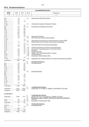 - 108 - 0512 Bundesministerium Leerstellenübersicht Bes.-/ E.-Gr. 2018 2017 lfd. Nr. Erläuterung 1 2 3 4 5 B 6..................... 1,0 - 1.2 Internationaler NATO-Stab, Brüssel B 3..................... 1,0 - A 16................... 1,0 1,0 A 14................... 1,0 - A 13 g................ 1,0 - 1.3 Internationale Akademie Nürnberger Prinzipien A 12................... - 1,0 B 9..................... 1,0 1,0 1.4 Europäischer Auswärtiger Dienst (EAD) B 6..................... 1,0 3,0 B 3..................... 4,0 3,0 A 16................... 1,0 2,0 A 15................... 9,0 9,0 A 14................... 3,0 4,0 A 10................... 1,0 1,0 A 10................... 1,0 1,0 1.5 Gemeinde Flechtlingen A 14................... 1,0 - 1.6 SPD-Fraktion des Deutschen Bundestages A 13 h................ - 1,0 A 12................... - 1,0 1.7 Organisation für Sicherheit und Zusammenarbeit in Europa (OSZE) A 15................... 1,0 - 1.8 Bündnis 90/Die Grünen-Fraktion des Deutschen Bundestages A 14................... - 1,0 A 16................... 1,0 1,0 1.9 CDU/CSU-Fraktion des Deutschen Bundestages A 14................... 1,0 1,0 A 14................... - 1,0 1.10 CTBTO (Comprehensive Test Ban Treaty Organisation) A 15................... 1,0 1,0 1.11 Gemeinsame Inspektionsgruppe der Vereinten Nationen A 15................... 2,0 1,0 1.12 Europarat B 3..................... 1,0 1,0 1.14 EUCAP Sahel Mali B 9..................... 1,0 1,0 1.15 UNSMIL (VN Unterstützungsmission in Libyen) A 13 h................ 1,0 - 1.16 Vereinte Nationen A 15................... 1,0 - 1.17 Europäische Investitionsbank (EIB) A 14................... - 1,0 A 13 g................ 1,0 - 1.18 Organisation der Vereinten Nationen für Industrie und Entwicklung (UNIDO) Zusammen......... 39,0 38,0 2. Sonstige Beurlaubung B 9..................... 1,0 1,0 2.1 Bundeskanzleramt B 6..................... 2,0 2,0 B 3..................... 4,0 2,0 A 16................... 3,0 3,0 A 15................... 7,0 5,0 A 14................... 7,0 8,0 B 11.................... 1,0 - 2.2 Bundespräsidialamt B 9..................... 1,0 - B 6..................... - 1,0 B 3..................... 2,0 1,0 A 16................... 1,0 2,0 A 15................... 1,0 - A 14................... 2,0 1,0 A 13 h................ - 1,0 A 12................... 1,0 - A 10................... - 1,0 Zusammen......... 33,0 28,0 3. Langfristige Beurlaubung Zusammen......... 151,0 153,0 3.1 gemäß §§ 90, 92, 95 BBG, § 7 DBeglG, § 6 MuSchEltZV, § 24 GAD Insgesamt.......... 223,0 219,0 Zu Titel 428 11 1. Langfristige Beurlaubung Zusammen......... 105,0 111,0 1.1 gemäß § 28 TVöD, § 9 UmzugsTV, § 15 BEEG, § 24 GAD 2. Beurlaubung wegen Tätigkeit außerhalb der Bundesverwaltung bei: E 15................... 1,0 1,0 2.1 FAO Rom AT B................... 1,0 1,0 2.5 Europäische Investitionsbank (EIB) Zusammen......... 2,0 2,0 3. Sonstige Beurlaubung AT (B 3).............. 1,0 - 3.1 Bundespräsidialamt E 9..................... - 2,0 E 9a................... 2,0 - Zusammen......... 3,0 2,0 Insgesamt.......... 110,0 115,0
