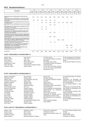 - 106 - 0512 Bundesministerium Haushaltsvermerk: Zu Kap. 0512 Die in den Tgr. 01 und 02 ausgebrachten Planstellen und Stellen dürfen im Umfang von bis zu 50 Prozent des Stellensolls der einzelnen Besoldungs- bzw. Entgeltgruppen zur gegenseitigen Verstärkung herangezogen werden. Ab einer Inanspruchnahme von 25 Prozent ist die Einwilligung des Bundesministeriums der Finanzen erforderlich. Tgr. 01 - Inland Planstellen-/Stellenübersicht Erläuterung der Veränderung gegenüber dem Vorjahr von Sp. 2 Ist- Neue Stellen, Stellenwegfall entfallen Besoldungs-/ Besetzung Wirksam- Hebungen, Umwand- auf Entgelt- 2018 2017 am und Umsetzun- werden von Herab- lungen, ohne ku/ ku- und kw- Funk- gruppen 1. Juni gen mit ku/ stufungen Umsetzungen kw-Vermerke kw-Vermerken Vermerken tions- 2017 gruppen + - + - + - + - + - 1 2 3 4 5 6 7 8 9 10 Titel 422 11 Beamtinnen und Beamte B 11..................... 2,0 2,0 2,0 - - - - - - - - - - - B 9...................... 12,0 13,0 11,0 - - - - - 1,0 - - - - - B 6...................... 28,0 27,0 25,0 - - 2,0 - - 1,0 - - - - - B 3...................... 63,0 63,0 45,6 - - - - - - - - - - - A 16.................... 58,0 58,0 77,4 - - - - - - - - - - - A 15.................... 175,0 179,0 248,2 - - 2,0 - - 6,0 - - - - - A 14.................... 138,0 136,0 114,3 - - 3,0 - - 1,0 - - - - - A 13 h................. 86,0 88,0 94,4 - - 1,0 - - 3,0 - - - - - A 13 g................. 255,0 253,0 211,3 - - 2,0 - - - - - - - - A 12.................... 90,0 88,0 164,1 - - 2,0 - - - - - - - - A 11..................... 57,0 57,0 143,5 - - - - - - - - - - - A 10.................... 37,0 38,0 60,8 - - - - - 1,0 - - - - - A 9 g .................. 32,0 32,0 29,9 - - - - - - - - - - - A 9 m+Z.............. 52,0 52,0 46,6 - - - - - - - - - - - A 9 m.................. 107,5 107,5 91,1 - - - - - - - - - - - A 8...................... 47,0 47,0 79,6 - - - - - - - - - - - A 7...................... 77,0 77,0 33,0 - - - - - - - - - - - A 6 m.................. 48,0 48,0 21,0 - - - - - - - - - - - A 6 e................... 23,0 23,0 15,0 - - - - - - - - - - - A 5...................... 34,0 34,0 23,0 - - - - - - - - - - - A 4...................... 29,5 29,5 - - - - - - - - - - - - Zusammen.......... 1 451,0 1 452,0 1 536,8 - - 12,0 - - 13,0 - - - - - Hochschullehrerinnen und Hochschullehrer C 3...................... - - 1,0 - - - - - - - - - - - C 2...................... - - 3,0 - - - - - - - - - - - W 3..................... 1,0 1,0 - - - - - - - - - - - - W 2..................... 3,0 3,0 - - - - - - - - - - - - Zusammen.......... 4,0 4,0 4,0 - - - - - - - - - - - Insgesamt........... 1 455,0 1 456,0 1 540,8 - - 12,0 - - 13,0 - - - - - Titel 428 11 - Erläuterungen Außertarifliche Arbeitnehmerinnen und Arbeitnehmer AT (B 6)............... - 1,0 1,0 - - - - - 1,0 - - - - - AT (B 3)............... 1,0 1,0 2,0 - - - - - - - - - - - AT B.................... 9,0 9,0 5,0 - - - - - - - - - - - Zusammen.......... 10,0 11,0 8,0 - - - - - 1,0 - - - - - Tarifliche Arbeitnehmerinnen und Arbeitnehmer E 15.................... 24,0 24,0 25,6 - - - - - - - - - - - E 14.................... 29,0 29,0 38,2 - - - - - - - - - - - E 13.................... 20,0 20,0 64,0 - - - - - - - - - - - E 12.................... 77,8 77,8 63,0 - - - - - - - - - - - E 11..................... 1,5 1,5 61,1 - - - - - - - - - - - E 10.................... 11,0 11,0 17,3 - - - - - - - - - - - E 9b.................... 87,8 87,8 122,2 - - - - - - - - - - - E 9a.................... 77,2 76,2 106,7 - - 1,0 - - - - - - - - E 8...................... 4,0 4,0 180,9 - - - - - - - - - - - E 7...................... 97,0 97,0 89,0 - - - - - - - - - - - E 6...................... 25,0 25,0 82,3 - - - - - - - - - - - E 5...................... 116,3 116,3 108,1 - - - - - - - - - - - E 4...................... 67,5 67,5 73,3 - - - - - - - - - - - E 3...................... 26,0 26,0 67,0 - - - - - - - - - - -