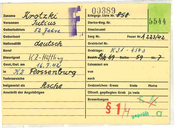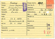 -~ . -~ Ii ffi-t1J'Z (, -z'Z Zuname lf~im "" .:rl r &.fAL/r Vorname ' ' '.! . ~d;L,. t« .3-.f: ~,..~. lJ.,~~ Dienstgrad n,, "( Ill;,L ~I:= ~j."~t.. · Nationalität , ~ZJc;;?. ~ h'~ ,_ 6 t. L I Wohnort Straße ~7- ge b. am " - ~tf'6~ J>. gest. am / tf'. litt in t[,t " in ~- Block t::Jberführl am - - - -----·- L ~ [i . - ·-- Bem. -~ - ~ ___ ·- • ~ 10 ~ - - -~ ~ ~~ ..- = - Bundeszuschuß -.1 ~ ~ I} ...---_ /cY Nr. nach Denkzeichen (t , . / 2~~de. - .- - ~6-- ~ Todesursache beigesetzt ols /__x:. Grabbezeichnung Exhumiert am ~~ -- - .3. /~.~.,f-/~5 Grabbrief Nr. von d..ö7.?.?~d.4/.rl_ .......... in Standesamt Sekt. I ')5;) ~) . JL·1 J ~ Sterb, Reg. Nr. r\~ :_.:;'!3 ß ~~ r c_r ~t r~ t' Beruf ~~f'J; Kriegsgr. Liste Nr. ···-- ~ rii~' SWP, I . ~ ! Ci. u ",) 7] ~- I I