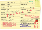 Zuname B e c k e r Vornamen Oskar Geburtsdatum - - 23.6.96 ---~--- Standesamt Sarg Nr. dt ' ') Sterbe-Reg. Nr. Geburtsort Nationalität - Kriegsgr. Liste Nr. Feuer Nr. • Beruf Wachtmeister der Diens-tg-ra - d- scbut-z-pu ltz e-x- Gest./ Gef. a 30 • ·- - -- --llf-'1\-- --i!l-1 - - - - - - - - - - - -- - - Exhumiert am - in---~~---=--H~--'o,.:.:IIL___ _ _ , von Todesursache beigesetzt als - § 16 (1) l Gräbergesetz BO nach Leiche Grabzeichen: Kreuz Ansch rift der Angehörigen ~~- VO l. 7. }Q65 -