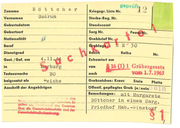 c h e r Gustav B ö t Zuname Vornamen Geburtsdatum t 31 . 5.1890 Geburtsort Nationalität Beruf Kriegsgr. Liste Nr. Prüft!.: Sterbe-Reg. Nr. Standesamt - - 1-:---::-------=-----'---- Sarg Nr. Feuer Nr. dt . - - -- ---- Grabbrief Nr. ( 1Yü1 ch hä nd1er , Dienstgrad Gest. / Gef. am von in Todesursache BO nach beigesetzt als Leiche Grabzeichen: Kreuz Platte öffentl. gepflegtes Grab )47 nein Anschrift der Angehörigen 01• Grabsll'lllo unterlieg t Stele Bemerkungen : '·' . dh f Ih n c I d$0 J! rl e Be•lirnrnunqeu dcs ..Gr ' b lt d 1' u ettrrmrllor.-fS ge cn 1!- Vonchrllle n c1 G ---~ü~ be~r__ld,u<IOLfic.rn~l~lrivcJ~ es ~~Olles Gernelndefrl dhofsordnun:.fo und der · _ - i-16--(: 0 l!!::§:l:..: ~ .. - - Hmb . -A1tenwerder