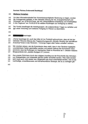 Stand 26.06.2018 § 6 Beschliisse (1) Die Kommission ist beschlussfähig, wenn mehr als die Hälfte ihrer stimmberechtigten Mitglieder anwesend ist. (2)Beschlosse werden mit Zweidrittelmehrheit der stimmen der anwesenden stimmberechtigten Mitglieder gefasst. (3) Die Vorsitzenden sind stimmberechtigt. (4) Stimmenthaltungen sind zulässig. Abweichende Meinùngeh sind auf Verlangen in das Protokoll der Sitzung aufzunehmen. § 7 Empfehlungen und Abschlussbericht (1) Die Kommission legt auf der Grundlage des Einsetzungsbeschlusses und dessen Zeitplan ihre Arbeitsergebnisse in schriftlichen Berichten an den Staatssekretärsausschuss der Bundesministerien BMWi, BMU, BMI, BMAs, BMF, BIEL, BMVI und BMBF nieder sowie den Abschlussbericht der Bundesregierung vor. (2)Wird im Hinblick auf einen wesentlichen Gegenstand der Berichte und des Abschlussberichts eine einheitliche Auffassung nicht erzielt, so sollen dem Bericht die unterschiedlichen Ansichten angefogt werden. (3)Dessen unbeschadet bemoht sich die Kommission, zu allen Fragen eine einvernehmliche Lösung zu finden, da der Erfolg der Kommissionsarbeit letztlich davon abhängt, dass ein breiter Konsens zustande kommt. (4) Die Bundesregierung veröffentlicht die Berichte der Kommission und den Abschlussbericht sowiè die über die Kommission in Auftrag gegebenen Gutachten. § 8 Öffentlichkeitsarbeit Erklärungen fiàr die Kommission und deren Arbeit werden von den Vorsitzenden in miteinander abgestimmter Form abgegeben. § $ Aufwandsentschädigung und Reisekostenerstattung Aufwandsentschädigung und Reisekostenerstattung fiir die Mitglieder der Kommission richten sich grundsätzlich nach den Richtlinien des Bundesministeriums der Finanzen for die Abfindung der Mitglieder von Beiräten, Ausschossen und Kommissionen und ähnlichen Einrichtungen des Bundes in der jeweils geltenden Fassung. § 10 Änderungen der Geschäftsordnung Änderungen der Geschäftsordnung bedorfen der Zweidrittelmehrheit der stimmen der Kommissionsmitglieder. § 11 Inkrafttreten Diese Geschaftsordnung.tritt am 26. Juni 2018 in Kraft. Seite 3 von 3