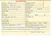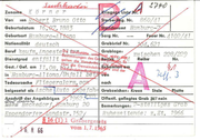 t Zuname Krlegsgr. Llate Nr. Vornamen Sterbe·Reg. Nr. Geburtsdatum Standesamt 1 /..( Geburtsort Nationalität Grabtage: Beruf 2 J: Dienstgrad Fe.(d webe( Bezirk Gest./ Gef. am t . q. 4 0 Exhumiert am von belgesetzt als ---_..,.~1 Gräbergesetz nach Todesursache ue.t'ehe Anschrift der Angehörigen Nr.1)(R Reihe Grabzelchen: Kreuz vom 1. J. 1965 Stele Platte