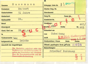 H a s e n b e c k pr Kriegsgr. Liste Nr. Sterbe-Reg. Nr. Standesamt Geburtsort Nationalität Beruf Dienstgrad Gest. / Gef. am in Sol dat _ 1 . 3. 43____ \Veid en Todesursache beigesetzt als Anschrift der Angeh" f 7