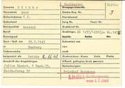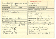 gepr.üft Zuname L ü t j e n B - - - -- Rudolf Geburtsdatum 23.9. 96 Geburtsort Harnburg Vornamen Nationalität d t. Kriegsgr. Liste N1·. - _J n_ Sterbe-Reg. Nr. Standesamt Sarg Nr. Feuer Nr. Grabbrief Nr. Beruf Nr. Dienstgrad 5 Gest. / Gef. am in Res. Laz. von nach Todesursache Urne Grabzeichen: Kreuz Stele Platte öffentl. gepflegtes Grab ja / nei n Bemerkungen: =--- - - - Friedhof Bramfeld ~~~~---1------ -------------- ·bcrgesetz vom 1. 7.196J . ....,.,........-- .