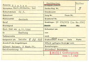 prüft H i n z e Kriegsgr. Liste Nr. - -- - - - - - - - - - - Vornamen Jo nny, he inrich, .Konrad Sterbe-Reg. Nr. - - - Geburtsdatum 20 Jahre Standesamt Zuname - - j? -- - ---- --1----------------------L------1 Sarg Nr. Geburtsort dt . Nationalität FeuerNr. --- -- --~·--- Grabbrief Nr. Grablage: Beruf - ---- --- -----1 oo ldat Dienstgrad 68 Reihe Nr. ---------- Gest. I Gef. am ----': in von Todesursache nach beigesetzt als Grabzeichen: Kreuz Anschrift der Angehörigen öffentl. gepflegtes Grab? Stele I nein Bemerkungen: Friedhof Hmb . -Altenwerder - - - -- - -