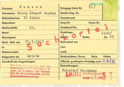 Zuname Ha n se n Kriegsgr. Liste Nr. Georg Eduard Sop hus Sterbe-Reg. Nr. -=-- - 1- -- -=--- - - - - - Standesamt Geburtsdatum 30 J ahre --------------------- Vornamen Sarg Nr. Geburtsort Nationa lität dt. Grabbrief Nr. Beruf Grablage: Dienstgrad Be l rk Gest. / Gef. am Exhumiert am in von I Todesursache beigesetzt als Feuer Nr. nach Leiche Grabzeichen: Kreuz Stele