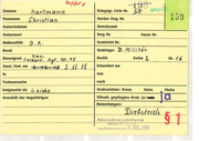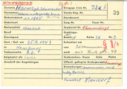 Zuname Krlegsgr. Liste Nr. Vornamen Sterbe · Reg. Nr. Geburtsdatum Standesamt Geburtsort Sarg Nr. ., Nationalität I Feuer Nr. y. Beruf Dienstgrad Bezirk Gest./ Get. am Exhumiert am ln von Todesursache nach belgesetzt als Grabzeichen: Kreuz Anschrift der Angehörigen Stele