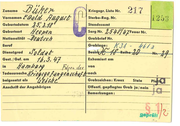 Zuname Kriegsgr. Liste Nr. Vorname Starb. Reg. Nr. Beruf Standesamt Dienstgrad Grabbrief Nr. Grabbezeichnung Wohnort Sekt. Straße Oberführt am von Exhumiert am gest. am nach in Denkzeichen Todesursache Bundeszuschuß beigesetzt als in •