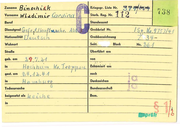Zuname B ~ 1•i k ~ l'v Vorname JltL c oltEJ. i utl·b. Beruf A~ 14. (~ ~;~ ~.~ .) r>. [._. ~ Dienstgrad R k!.!S~<!.- Nationalität UJU1 '1 - Kriegsgr. Liste Nr.~ LL /q.Jl_ f.l - - - - - Sterb. Reg. Nr. Gra bbrief Nr. Straße Oberführt am - -- A~ . geb. am in in ~ ~ Lf- . J .·___1 0_· __Y. ~-- Hb~· beigesetzt ols Exhumiert am - nach BJ.od< .2. Nr. . ~e,~chQ/ _ - - Bem. - :M 1 1 . /2 ___ § ( Denkz:eichen b - - rn - .P Bunden:uschuß ~ ~ Todesursoche in von cll cu·o5law6lr gest. am B IIi~ )r5 a Grabbez:elchnung ~t. J 34 1 1t /sg.ßp. i h-/ 1s 5~/Lf Standesamt Wohnort 1741 ' ----~S:l r J ')'.. ~ ~~ni -- -