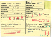 z_u_n_a_m_e_--..:R = o..c;go.::a:.:l::_ g e b • Pinna'l:!_ _ _ Vorname n Geburtsdatum Ella S o p hie 2 9 • 2_tß 2 Geburtso rt \..\ ~-t\\kv~ Nationalität d t. lJ}g~ !liste N r. ~ _ _ Sterbe- Reg. Nr. ____ _s::-t_a_nde -:-;-s_a_m_t_ _ _--::------l____ l, 1 Sarg Nr. Feuer Nr. Grabbrief Nr. Nr. ------ Gest./ Gef. am 816 (1) 1 G r:,bergesetz in om 1. 7.1 S5 Todesurs ache beiges etzt als ~r.c.ht ire i Anschrift der Angehörigen ohe Grabzelche n: Kreuz Stele öffentl. gepflegtes Grab ja I ne in Bemerkungen: geprij Platte il e j ß