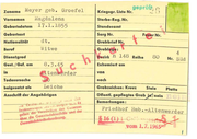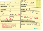 unbek~n~t _ Zuname Meyer_ ge b . Vornamen Geburtsdatum Ro sa - 29 . 8 . 88 - ~ 1203 Kriegsgr. Liste~ -~_ Sterbe-Reg. Nr. - - - - - - -- - - - - - - - - -- Standesamt Geburtsort Nationalität d t. Beruf Wwe . Dienstgrad V ~e~irk Reihe 2 ?.TD:-44---:;;\\ .---~,~~-I-- E.x...::.h_u_m _ le-rt_a_m _------- Gest. I Gef. am in Todesursache HWU~ B UU\ 1433 Jj it Nr. von nach beigesetzt als Anschrift der Angehörigen 1583/ 44 Platte öffentl. ge pflegtes Grab ja 1 nein Bemerkungen: Ne u e r Friedho f -. •Prüft