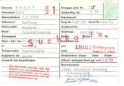 Sekt. Wohnort 4.J Straße Sch1 fM.str. ___3 Oberführt am geb. am 10. g_ 1 von I-/am b_urg __ Exhumiert 11-8_. _l.t_1 nach I ln gest. am in --- Ci Bundeszuschuß Todesursache beigesetzt ols in Denkzeichen Le/ch_e_ Bem. Block