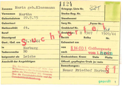 0 1 f "W Zuname Marin geb . Klu ssmann Vornamen Martha Geburtsdatum 20~- .~g~.-..,.-1..... 5_ .~ Kriegsgr. Liste Nr. Sterbe-Reg. Nr. _ _ Standesamt Sarg Nr. Geburtsort Nationalität .!~ F~uer Nr. ~ dt. ~387 Beruf \%"!# t;,;! I r 1sog;44 Exhumiert am von Todesursache beigesetzt als k b (1) 1 nach Le i che Anschrift der Ange hörigen Grabzeichen: Kreuz Platte öffentl. gepflegtes Grab ja / nein Bemerkungen: Neu er Fr iedh;f Harbut geprufl