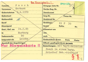 Zuname Vornamen p u s c h Karl-Heinrich - - · - Geburtsdatum 18.11. 1936 -- Standesamt Sarg Nr. Geburtsort Nationalität \\-- -4 ~- - - - - Gest. I Gef. am t?) Harburg belges etzt als e35 ~ Dienstgrad Todesursache Feuer N r. ctf. Beruf ln 9u Kriegsgr. Liste Nr. - -- Sterbe- Reg. Nr. Bezirk Reihe ------ Nr. Exhumiert am von BO nach LeiChe Grabzeiche n : Kreuz Stele Platte Anschrift der Angehörigen Die GrubsttUte unterliegt nldlt da,~ 8 ltlmmung~n des vtllber:geMfuJ....fs-- - gtlf n die Voudulffotn des G.,.tzes Ober die Gemolndeltledh61-....und dw GimtlndefrtedhobGrdnuna. in e inem Sarg. ----- Friedhof Hmb.-S instorf - - ~rnrn::;r - lJ _, ~· - tz· V 1.7.1965