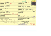 ey (1884, Zuname Öl sole ws K L Tr , 1909. Nr. ER 4 1 eg Vornamen Uta 12 .[ Sterbe-Reg. nr. ‚739227 yy ne rab. 23.3:83 Standesamt € Geburtsort bu 2iweid Sarg Nr. /$. a HH Feuer Nr. Natlonalität h Grabbrief Nr. Beruf Urtb iu me Grablage: V euer Freeolhov Dienstgrad 2 as Ab, Bezirk Roma hen ee Nr. 6 93 Gest./Gef. am U 24 Exhumiert am in _ EZ ee von Todesursache W2 oO ß nach . beigesetzt als /_ £( Ghe Grabzeichen: Kreuz Stele Platte J | = Anschrift der Angehörigen Öffentl. gepflegtes Grab ja/nein Bemerkungen: N eur Freeclhuf Horbur Ruherschisontschädikung Sin Kb st nun k Aa P}| vom Bund anorkannı AUG, 353 geprüff
