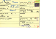 Zuname Kr Z. lo L/ Kriegsgr. Liste Nr. ; Vornamen Will _#olo LE Sterbe-Reg. Nr. 3 3 5 Geburtsdatum Standesamt Geburtsort Sarg Nr. Feuer Nr. Natlonalität DZ wrtsch Grabbriet Nr. Beruf Grablage: 9. £Ar enfriedhof Dienstgrad We PAFMODN Bezirk Reihe Nr. Z 3 f Gest./Gef. am Je} IS Exhumiert am | In von ! Todesursache nach | beigesetzials / z IC, d zZ Grabzeichen: Kreuz Stele ‚Platte ! Anschrift der Angehörigen Öffentl. gepflegtes Grab ja/nate“ N @ Bemerkungen: DUCLGSTCLE., & |