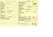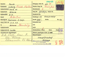 gepröh TEE Zuname Pauch Kriegsgr. Liste Nr. Zr 4 Vornamen |], vdwig Fr vull; N6 Le z| Sterbe-Reg. Nr. ES J02 Geburtsdatum 4,.B, 4 q en Standesamt Geburtson Ylroma Sarg Nr. 189 \ 043 Feuer Nr. Natlonalität Di. Grabbrief Nr. Beruf Ir d dı 7 PL Grablage: 30 Ehrenfrredhof Dienstgrad Yauknosen - 0,5 efr._ Bezirk 'Y777/ Reihe Nr. 99 Gest./Gel.am 3.3.43 Exhumiert am In Hambn! von Todesursache nach beigesetzt als arohe Grabzeichen: kfeuz Stele Pratrd Ä ij Anschrift der Angehörigen , Öffentl. gepflegtes Grab ja/meies “ | ein ÄHeur._P: Bemerkungen: Hbe Ak 7/77 FA Haupl-frreclhof Löhmanustr. Fb Hdand ir / Hd. jährlich vom Bund anerkannt... 2. APR...1959