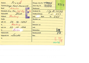 Zuname ar 2 28 es Kriegsgr. Liste Nr. a 82 Vorname go Darl Her z Sterb. Reg. Nr. 2 | | } 2 ! 3 Beruf Fr berfer Standesamt Dienstgrad Ep, Pos. Ja £ Reh N 0 | Grabbrief Nr. L Ja —: 70330 Nationalität VRR, RN Grabbezeichnung > JI4- Wohnort Mansbaıy Sekt. Block N. 2605 Straße Überführt am aeb.om ZA 72 1EEE | In _ Main be rs Exhumlert: am gest. am a A AG nach 2 in Bou 2 Denkzeichen I Todesursache Bundeszuschuß beigesetzt als I, ie | Bem. 2 ” ;