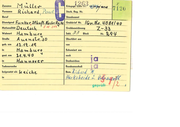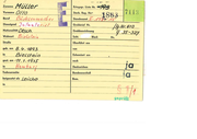 - rum Kriegsgr. Liste Nr. Pe Sterb. Reg. Nr* Standesamt 7 /Y A zum Müller Vorname Oro Beruf Büchs ebhtiud de V Dienstgrad u fau ferıyf Nationalität AsCA, Grabbezeichnung Y I35- 3 27 Grabbrief Nr, ; 070 Wohnot Belr/eri Sekt. ___ Block Nr. Straße Überführt am geb. am 9,4, 1893 E von in Bielstein. Exhumiert am | a gest. am 79.7.9794, LE nach . in h 4 tu b ur/ Denkzeichen J a Todesursache u: \ ö Bundeszuschuß 'Q beigesetzt als / erıche Bem. geprüft
