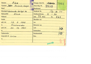 Zuname Pre DEr Vorname Fr 2z Beruf frbei ker Netienaitit nA Dienstgrad Ag 4, 322. Lem Inf Peg FR £ (85 | Grabbrief Nr. Wohnot uslaclk Ahseslo 7, Straße MD A T887 Sterb. Reg. Nr. Standesamt HI za % ZEN AG E Grabbezeichnung Sekt. Block Nr, Überführt am geb. am von - 8 @ in i ö Exhumiert am gest.am 4 A APIS | nach in Ka a b urg I u Denkzeichen z Todesursache | beigesetzt ols 4 77 cr. & ja ——— Bundeszuschuß J OD _R 1a a