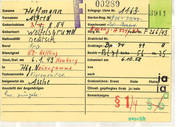 Wohnort Straße geb. am J~. ~~~---I- von_ in gest. am _ __ }i ~7'" / ~n_ -----~-II -Ex_h_u_m_ie_rt_a_m_--=-=---------2.:!=~ JS: "til. ~~ nach in Denbe iehen Todesursache Bundesz:uschuß Bem. in