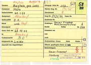 Zuname ~4 J]ah r Vornamen 1/h i 1 Krlegsgr. Liste Nr. Cltr/ J/ / 11 .. Standesamt Geburtsort Sarg Nr. _J) e ~ t u/t. Grablage: Dienstgrad Bezirk fold11f _4, !. .II Feuer Nr. von Todesursache nach Leiche :i) 1 Reihe Grabzeichen: Kreuz Stele Öffentl. gepflegtes Grab ja/.neln Anschrift der Angehörigen Bemerkungen: > fAUG. 195g v om Bund anorkannl ,_ •••••.••••••••• -- Nr. t ~--- ---- ~ • Platte 10 7lt.'e/, f. t_~/c.6. Ruhere cht sen ts chö d I gu ng :10 1991 ,, ., .. l . ~ .11;.&~-Jl. Exhumiert am in belgesetzt als .. Grabbrief Nr. Beruf Gest. / Gef. am 10 Sterbe·Reg. Nr. Geburtsdatum Nationalität .f-2-- ült ~ .;J 11 u -